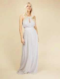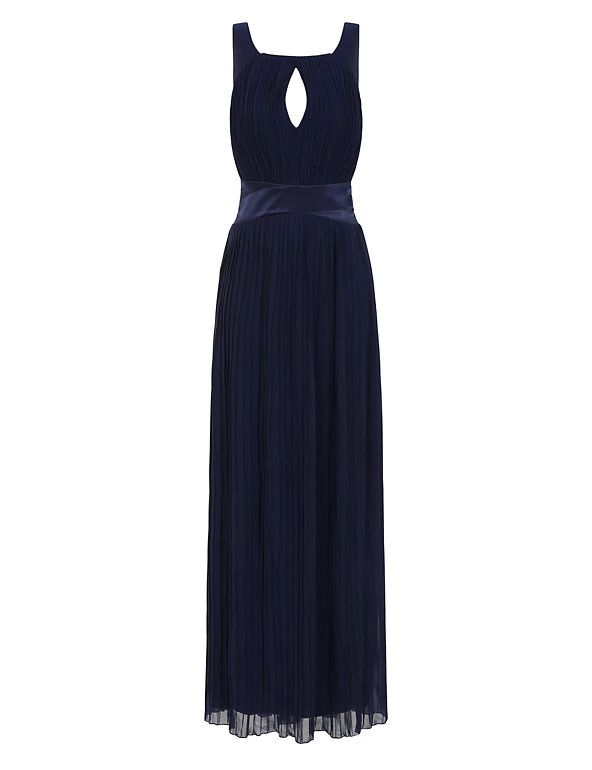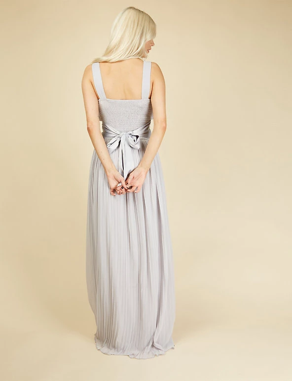 This bridesmaid dress from Little Mistress is an elegant choice for your leading ladies. It’s cut to a regular fit for comfort and features gentle pleating throughout. The elegant square neckline adds a modern touch, along with a cutout detail on the bodice. Shirring at the back gives flexibility, and a flattering silky panel at the waist wraps around the back into a romantic bow. This style is lined for a smooth finish.