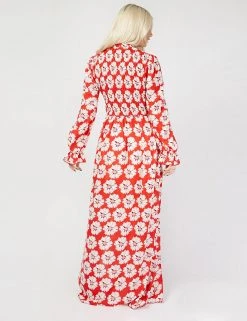 Product Style: Tea dress, Product Length: Maxi, Fit: Regular fit, Unlined, Neck Shape: V neck, Sleeve length: Long sleeve