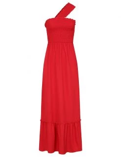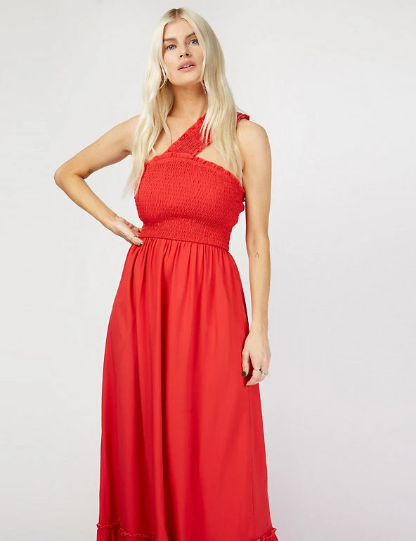Make an entrance in this stunning smock dress by Vogue Williams X Little Mistress. This regular fit style has a shirred bodice for a close yet flattering fit. The single asymmetric strap adds a modern touch and the maxi skirt is tiered for extra volume.