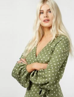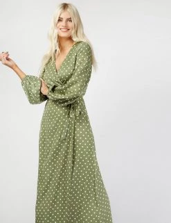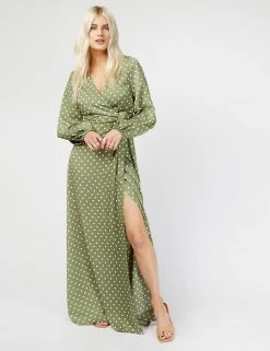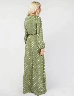 Embrace always on-trend polka dots with this timeless wrap dress by Vogue Williams X Little Mistress. Cut to a flattering regular fit, this piece features an elegant v-neck and a matching side tie fastening. Elasticated cuffs on the long sleeves create a gentle blouson shape and the maxi skirt is slit for an extra glamorous touch.