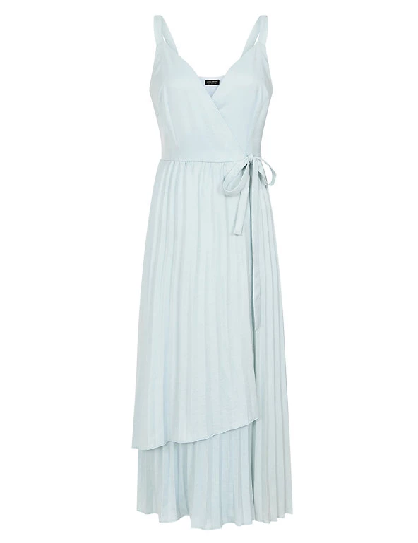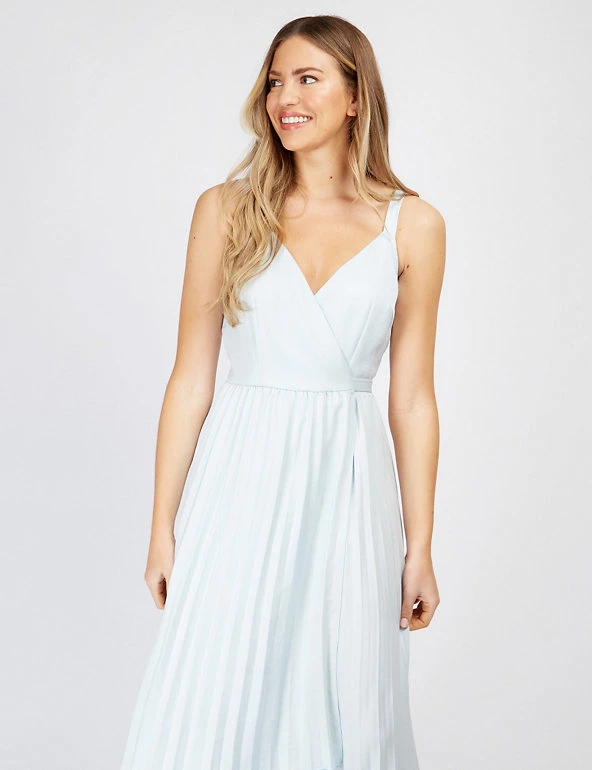 Little Mistress X Vogue Williams Dresses Satin V-Neck Pleated Midaxi Wrap Dress