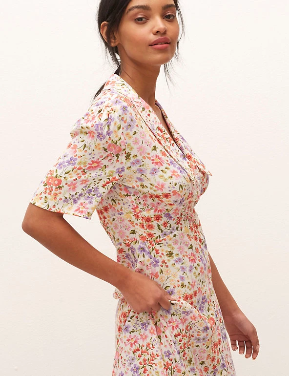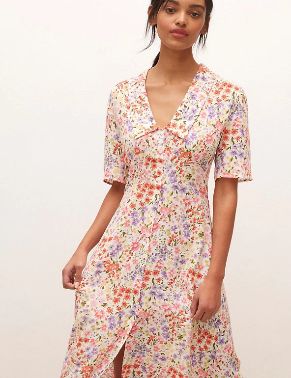 This pretty shirt dress from Nobody’s Child lends your look vintage-inspired charm. It’s cut to a fitted shape, with a waisted panel to complement your figure and classic short sleeves. Pretty florals bloom all over, contrasting with the smartness of the collared neck. It has a button-through fastening and falls to an elegant midi length. Made with sustainably sourced viscose.