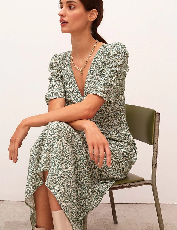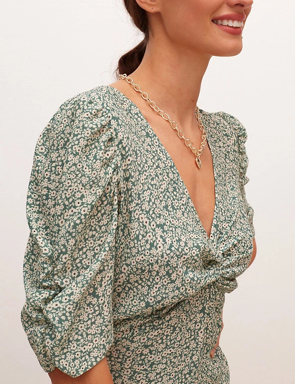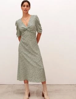 Elevate your off-duty wardrobe with this timeless tea dress from Nobody’s Child. It’s designed in a regular fit and falls to a sophisticated midaxi length. The feminine v-neckline is detailed with a twist at the front and the short sleeves feature gathering for modern appeal. Made with sustainably sourced viscose.