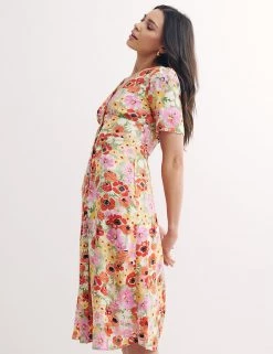 Decorated with artistic florals, this Nobody’s Child tea dress is an instant outfit. It has a fitted cut with a waisted panel to highlight your silhouette and a flattering v-neckline. The short sleeves will have you ready for sunny days. This piece is finished with a button-through fastening and falls to an on-trend midi length. Made with sustainably sourced viscose. Nobody’s Child designs are cut to a form-fitting shape, so if you’re looking for a more regular fit, we recommend choosing the next size up.