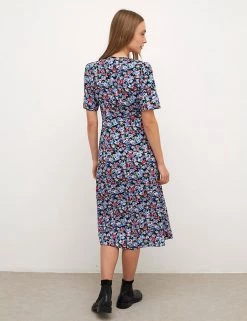 Painterly flowers bloom all over this feminine tea dress from Nobody’s Child. It’s designed in a regular fit, with a flattering v-neckline and breezy short sleeves. Sitting pretty at midaxi length, with waisted panel detailing, this number was made to complement your figure. It’s finished with a button-through fastening. Made with sustainably sourced viscose. Nobody’s Child designs are cut to a form-fitting shape, so if you’re looking for a more relaxed fit, we recommend choosing the next size up.