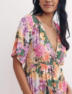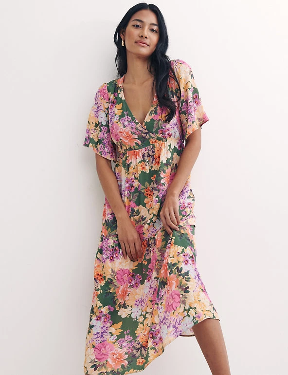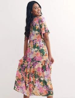 This vibrant floral smock dress by Nobody’s Child will become your go-to brunch outfit. Cut to a roomy relaxed fit, this chic piece drops to an elegant midi length and features a flattering v-neck. It’s finished with contemporary tiered detailing, pretty gathering at the waist and a stylish mock-wrap design. Made with sustainably sourced viscose.