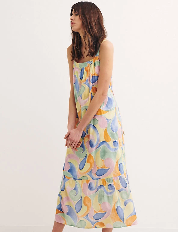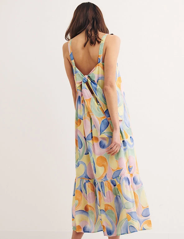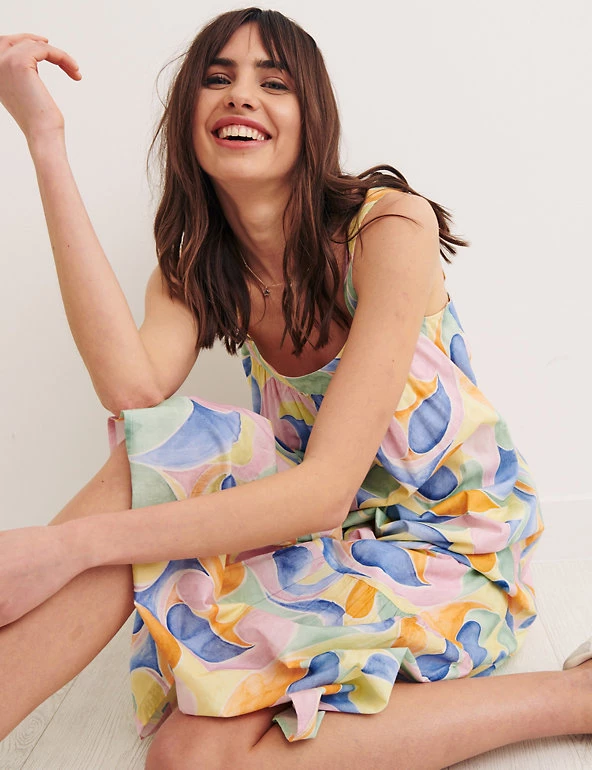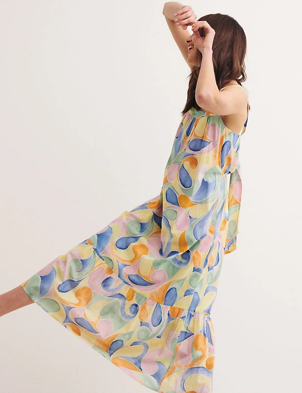 A playful print enlivens this pure cotton smock dress by Nobody’s Child. This chic midi-length piece is cut to a roomy relaxed fit for ultimate comfort and sports a flattering scoop neck. The strappy design is perfect for warmer weather. A stylish tie fastening at the back and subtle tiering on the hem complete the look.