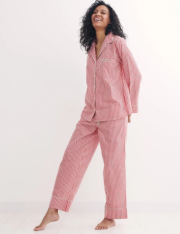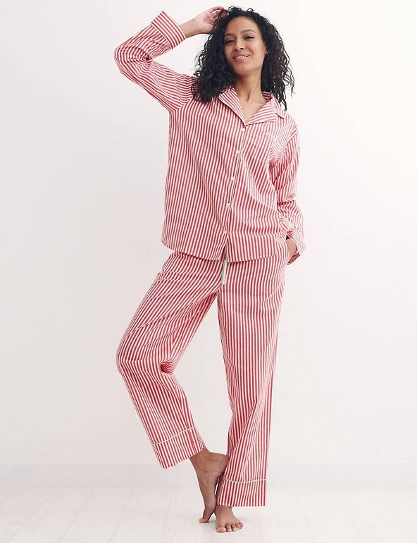 Slip into these dreamy pure cotton pyjamas by Nobody’s Child for breathable comfort as you sleep. The stripy set comprises long bottoms with a drawstring waist and a relaxed open-collar shirt, both in a comfy regular fit. ‘Nobody’s Child’ embroidery adorns the chest pocket. Made with organic cotton. Nobody’s Child designs are cut to a form-fitting shape, so if you’re looking for a more relaxed fit, we recommend choosing the next size up.