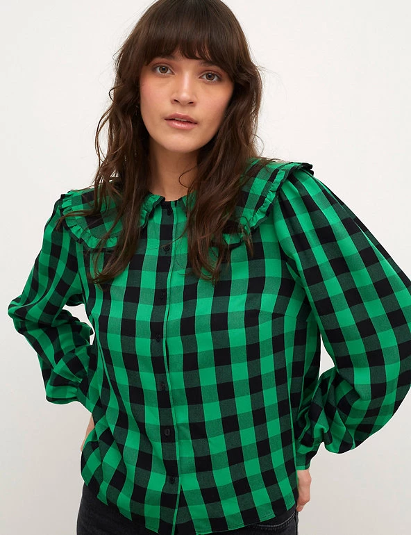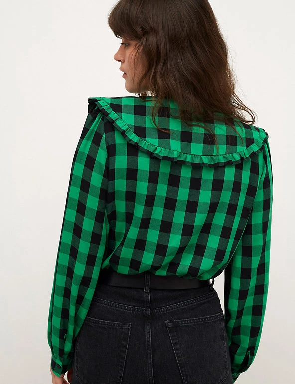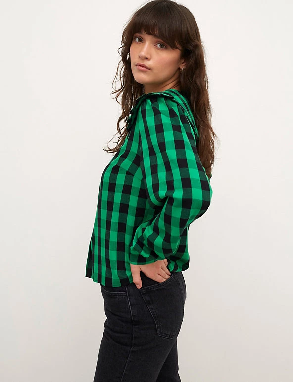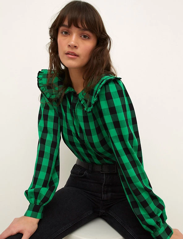 This checked blouse from Nobody’s Child is both bold and charming. It’s cut to a comfortable regular fit and has an oversized collar with cute frill detailing. The cuffed long sleeves feature a subtle puff design for added volume. A front button fastening completes the design. Made with sustainably sourced viscose.