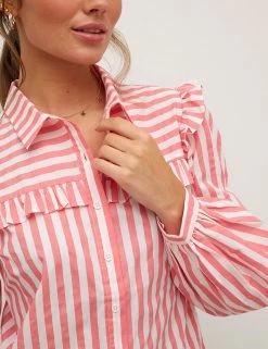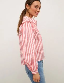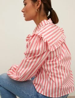 This striped organic cotton blouse from Nobody’s Child brings contemporary style to a classic design. It’s cut in a comfortable regular fit with a simple collared neckline and button-down fastening. Pretty frill detailing features across the chest and on the shoulders, while lightly puffed long sleeves add volume.