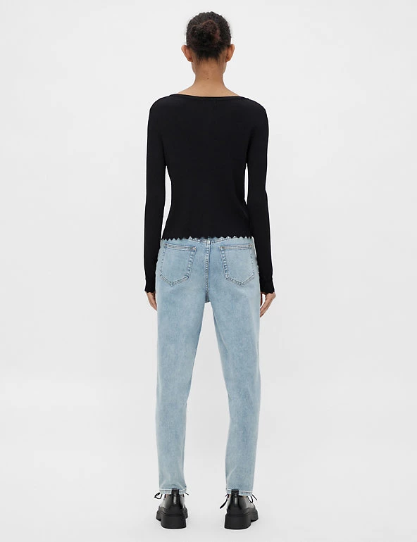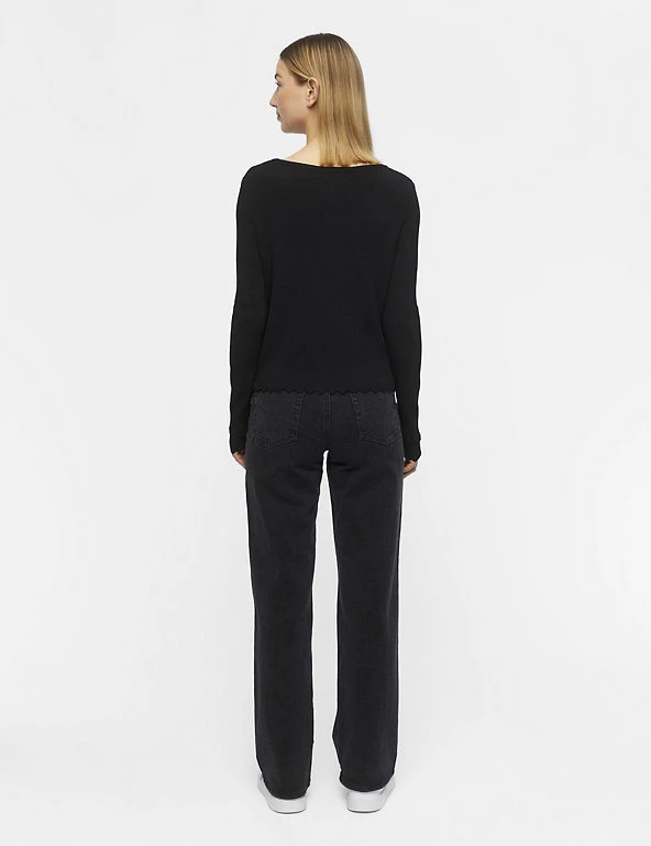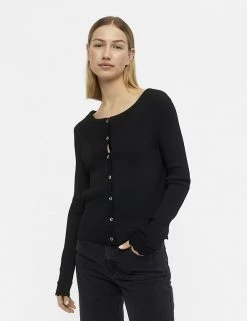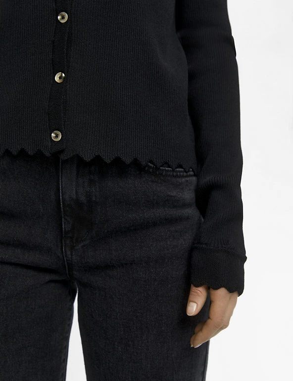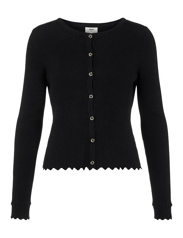 Layer up your look with this chic knitted cardigan from OBJECT. It’s cut to a regular fit, with a classic button-through fastening and flattering crew neckline. Scalloped hems give a feminine finish. Made with sustainably sourced viscose.