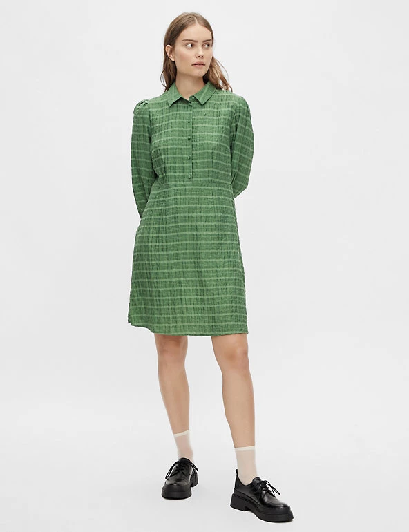 Tap into the season’s preppy trend with this checked shirt dress by OBJECT. The regular fit style has a waist-skimming silhouette that falls to the knee. A button-through body and collared neckline keep it smart, while gathered blouson sleeves add statement-making volume.