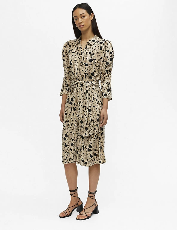 Tap into abstract prints with this striking knee-length dress by OBJECT. The regular fit style comes in a shirt silhouette, with a neat collar neckline and concealed button placket. Ruching on the sleeves adds statement volume. Made with sustainably sourced viscose.