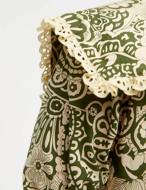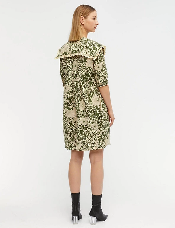 This pure cotton shirt dress from OBJECT is what happens when statement collars and retro-inspired prints meet. It’s cut to an effortless fit for throw-on-and-go style, with cool short sleeves and a knee-length hem. The collar features a feminine lace trim, and the matching button fastenings have an elegant gold metallic rim.
