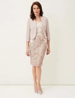Finish occasion outfits in sophisticated style with this Phase Eight jacket. It has a figure-flattering fitted shape, with 3/4-length sleeves and a subtle peplum hem at the back. Cut to the waist with an open front, it will complement your ensemble underneath.