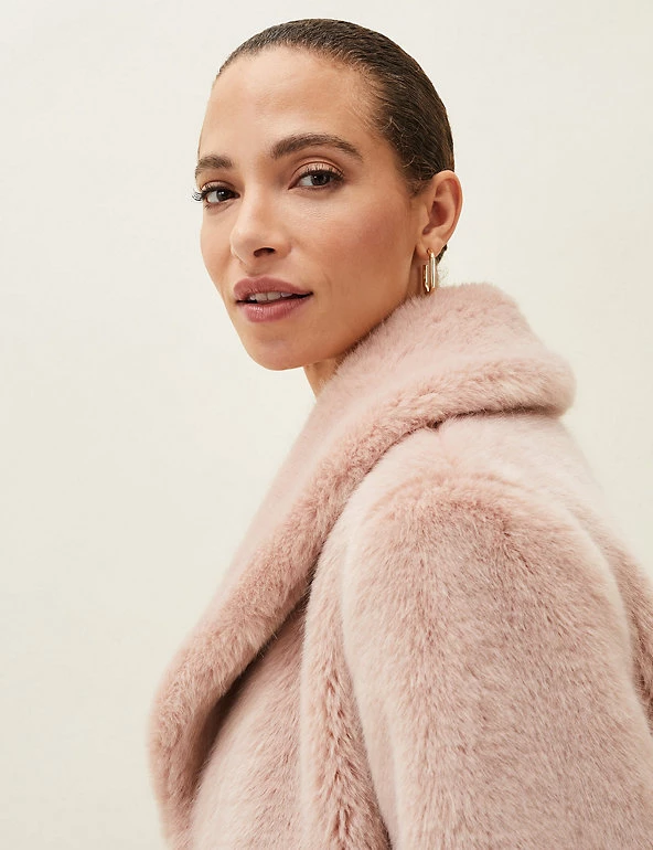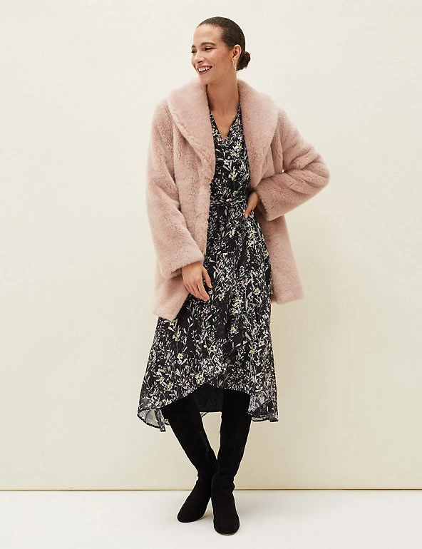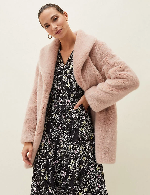 Wrap up in this faux fur coat from Phase Eight for instant elegance. The regular-fit design is cut in a chic cocoon shape, with contemporary oversized lapels and two handy side pockets. It fastens with concealed poppers and has a super soft texture. It’s lined for your comfort.
