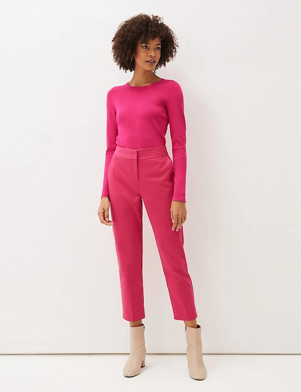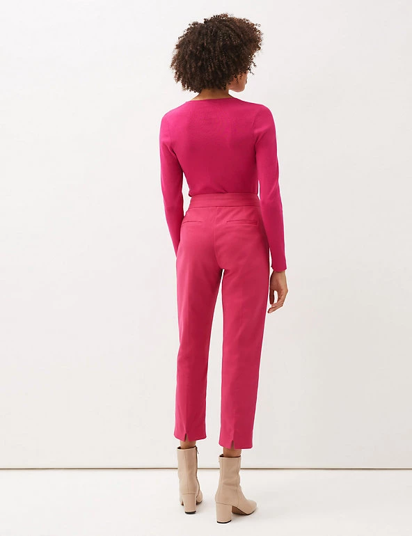 These cotton-rich cropped trousers from Phase Eight will create an effortlessly elegant look. The mid-rise design is cut to a streamlined straight leg that falls to a flattering 7/8 length. A discreet zip fastening and in-seam pockets add the finishing touch, while added stretch in the fabric provides extra comfort. This brand is proud to invest in making cotton production more sustainable.