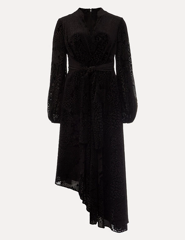 Be party-ready in a flash with this elegant knee-length dress from Phase 8. It’s cut in a timeless regular fit with a flattering tie waist and an on-trend asymmetrical hem. This statement piece features an animal print burnout texture and voluminous long sleeves. The lining adds supreme comfort, while the v-neck provides a feminine finish.