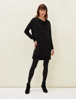 Stud detailing gives this classic knitted dress from Phase Eight a modern edge. The jumper-style design is cut to a comfy relaxed fit, making it perfect for everyday wear. It falls to a flattering knee length and features a cowl neck for a cosy finish.