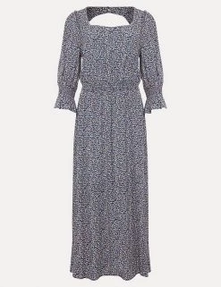 With its flattering shape and versatile print, this Phase Eight dress is a go-to look. Cut to a regular fit, this style has a modern square neck and smocking at the waist to enhance the silhouette. The short sleeves have elasticated cuffs for extra shaping, and the all-over ditsy floral print will look great season after season. It fastens with covered buttons at the cut-out back. Made with sustainably sourced viscose.