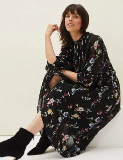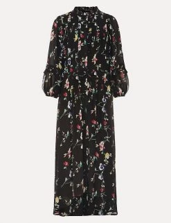 This floaty floral shift dress from Phase Eight is an elegant choice for either day or night. The flattering midaxi-length design skims the body and is cut to an easy regular fit. A waist tie offers extra shaping, and the long blouson sleeves create volume. Frill detail across the bodice and on the high neckline gives a final feminine flourish.
