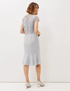 Add a romantic feel to your occasionwear with this classic bodycon dress from Phase Eight, complete with a feminine floral lace layer. It’s cut to a figure-skimming regular fit and falls to a flattering midi length. The peplum skirt adds extra shaping, while short sleeves and a rounded neck provide timeless style. It is lined for comfort and has a zip fastening on the back.