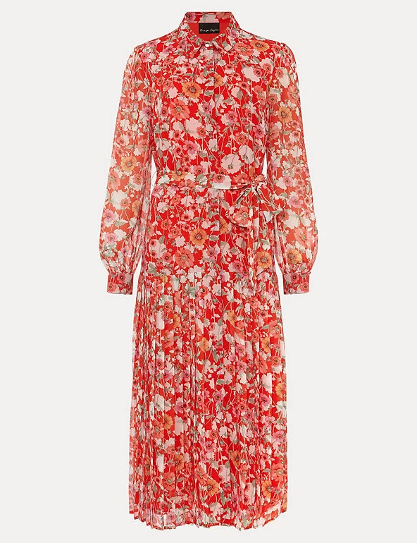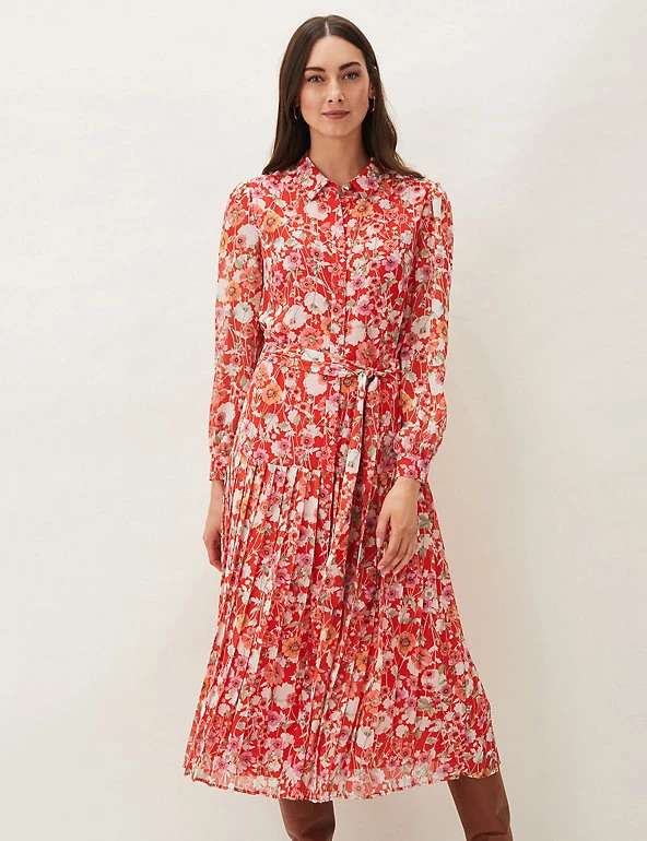 Turn heads in this thoughtfully crafted floral shirt dress from Phase Eight. It’s cut to a regular fit, with a pleated skirt to create movement as you walk and a tie-waist belt to cinch your waist. A smart collared neck and long sleeves finish off this chic midi style.