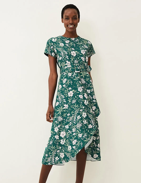 This midi-length Phase Eight dress pairs a pretty floral design with a waist belt for a look that’s both smart and feminine. It’s designed in a regular fit with short sleeves, round neck and back zip fastening. The raised hem at the front adds extra elegance.