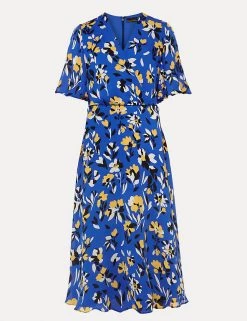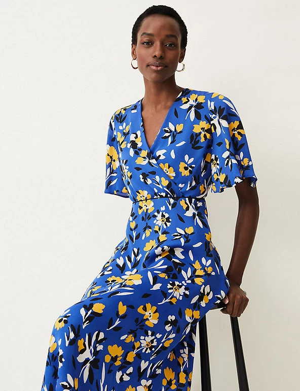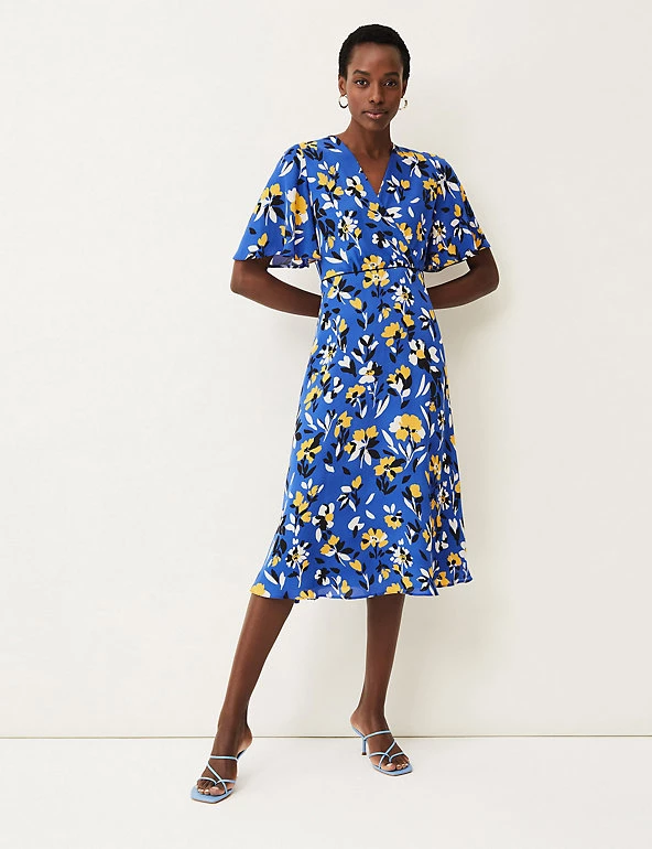 Achieve instant elegance with this beautiful floral skater dress from Phase Eight. This flattering faux-wrap style is designed in an effortless regular fit, with a fitted v-neck bodice that falls into a gently flared midi skirt. Its short fluted sleeves add a floaty, feminine feel, while contrast piping works to enhance the waist. This statement occasion piece is printed throughout with bold blooms, and fastens with a concealed centre back zip.