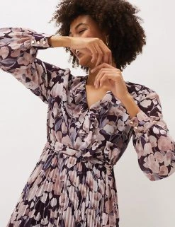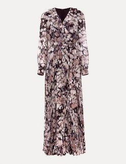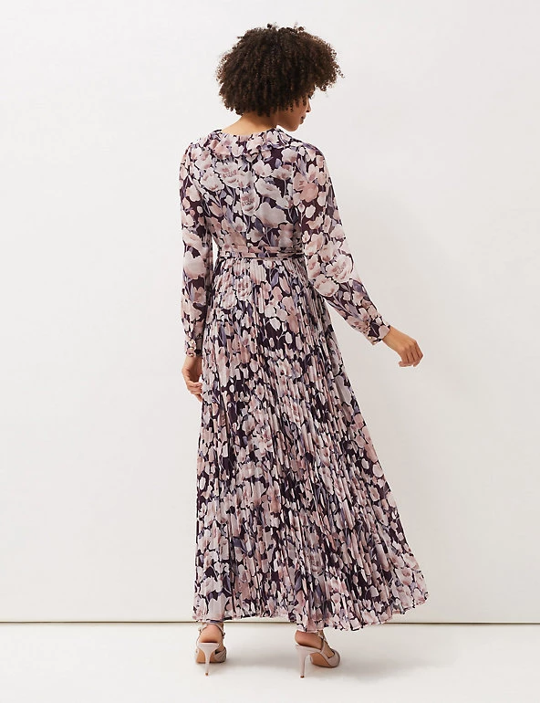This flowing column dress from Phase Eight is printed with a romantic floral design that’s perfect for special occasions. It’s cut in a comfortable regular fit, with long sleeves and a feminine v-neckline. The maxi-length skirt is pleated, giving fluttery movement that’s echoed in the frilled trim at the neckline. A tie belt emphasises your waist. The dress fastens with a zip and is fully lined for comfort. Made with recycled polyester.