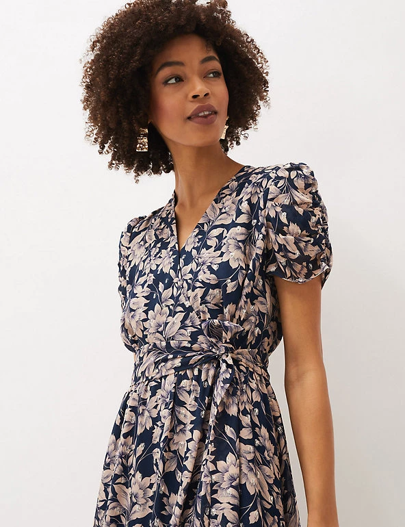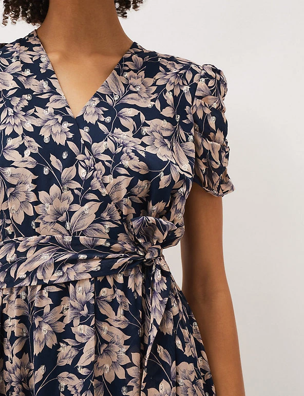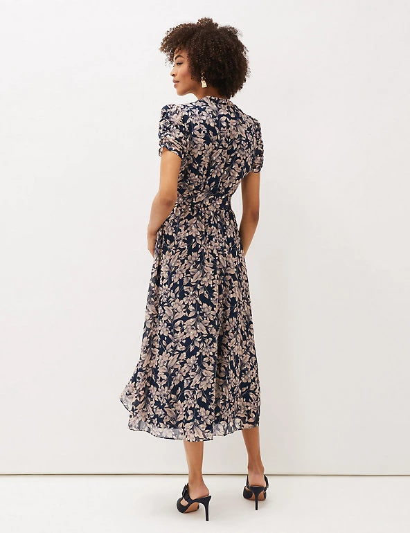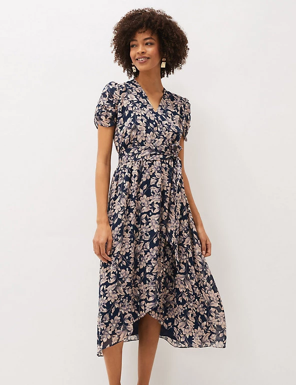 Combining delicate chiffon with feminine florals, this midi dress from Phase Eight is an eye-catching addition to your occasionwear. The shift style is cut to a comfortable regular fit and has a tie detail at the waist for extra shaping. Short puff sleeves add subtle volume, while the v-neckline gives a sophisticated touch. The dress is fastened with a discreet zip on the back.