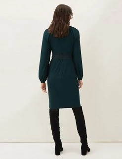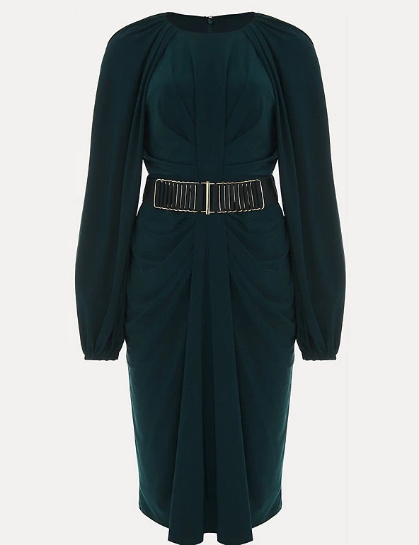 Create a chic evening look with this knee-length Phase Eight dress. Designed in a regular fit, it features elegant ruching and long blouson sleeves. A contrast metal belt cinches your waist while adding a touch of glam. It’s lined for comfort and coverage.