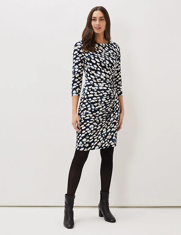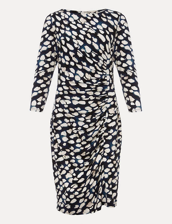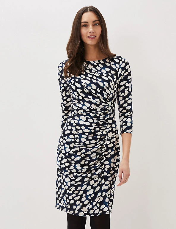 With its striking spot print and figure-hugging silhouette, this bodycon jersey dress from Phase Eight is a standout choice. It’s cut in a neat fitted shape, with an easy round neckline and feminine three-quarter sleeves. Ruching across the bodice and waist creates a flattering look, and the knee-length hemline gives it a wear-anywhere feel. This piece is lined for comfort, and fastens with a zip.