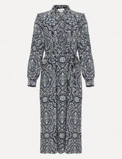 Update your autumn wardrobe with this paisley print waisted dress from Phase Eight. It’s designed in a comfy regular fit with a flattering belted waist and a versatile midi length. Three-quarter sleeves add a neat finish, while frill details on the collared neck and shoulders add feminine flourishes. This striking piece is finished with buttons down the bodice.