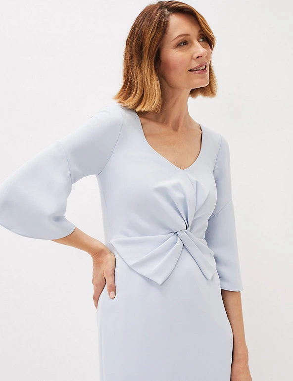 Upgrade your occasionwear with this elegant Phase Eight dress. This figure-flattering bodycon design is cut in a comfy regular fit with a versatile midi length. Gently flared three-quarter sleeves add a touch of volume, while a v-neck provides a feminine flourish. It’s lined for comfort and finished with an oversized bow on the front for a statement look. This refined piece fastens with a discreet back zip.