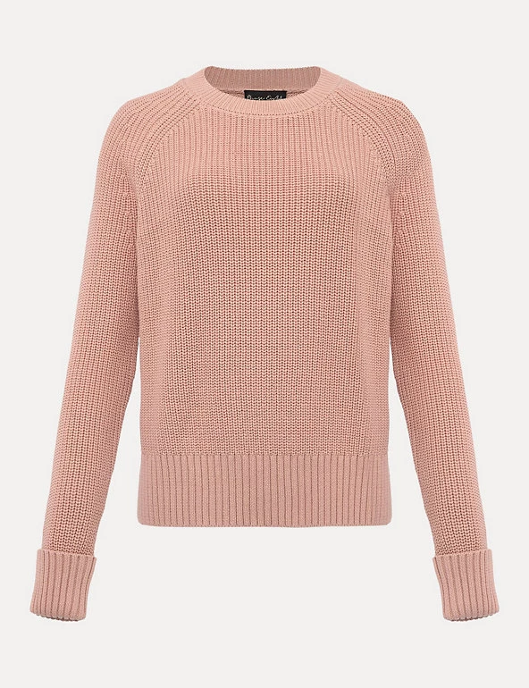 This textured knit pure cotton jumper from Phase Eight will become your go-to for chilly days. It’s designed in a comfy regular fit with a timeless crew neck. The ribbed rolled-back cuffs, hem and collar help to lock out the cold.