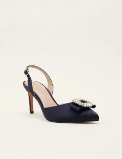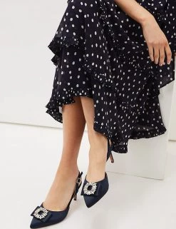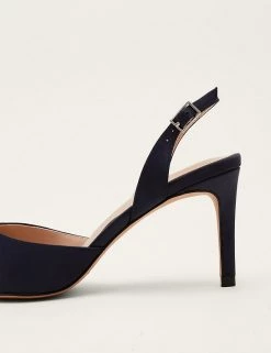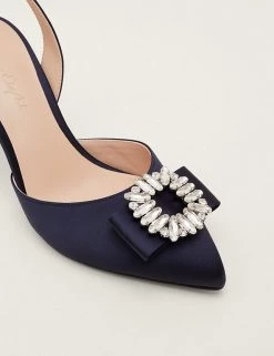 Elevate party outfits with these show-stopping slingback heels from Phase Eight. This regular fit pair fastens with a side buckle and has an elegant stiletto heel. They’re crafted from soft satin fabric with a pointed toe and have a striking embellishment on the front.