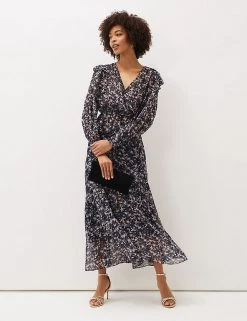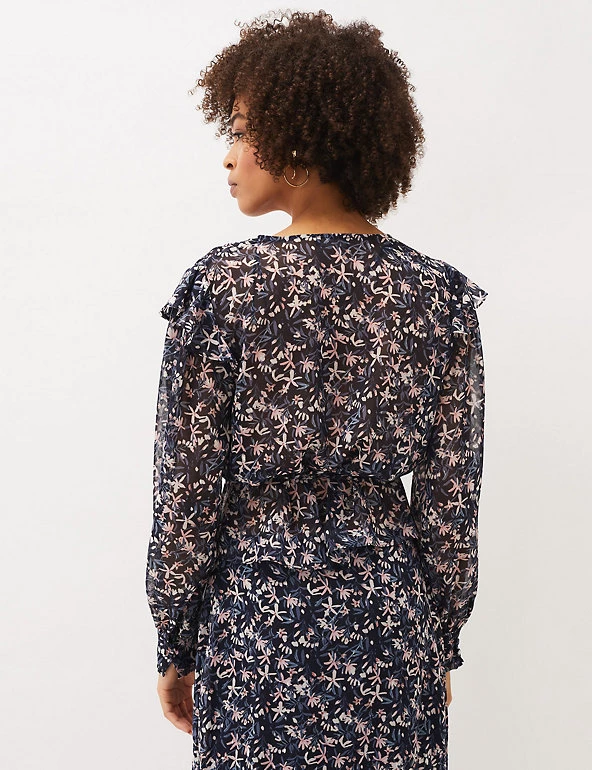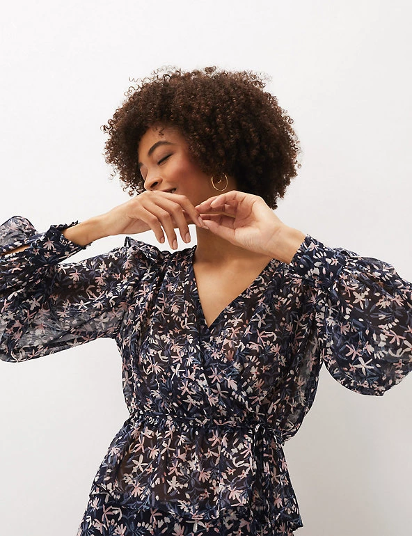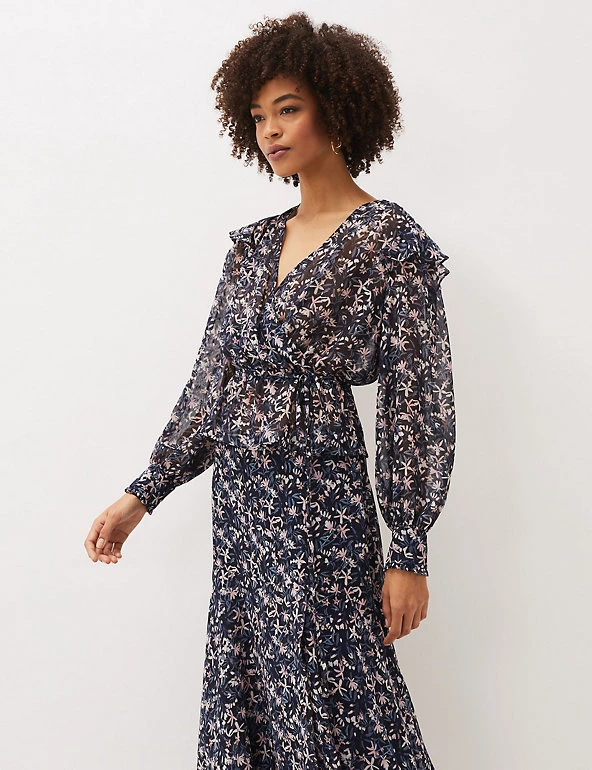 With its delicate detailing and floaty fabric, this floral blouse from Phase Eight has a romantic feel. It’s made in a comfortable regular fit, with a feminine v-neckline and a flattering crossover front. A tie fastening emphasises your waist. Full blouson sleeves are gathered to deep cuffs to add volume, and frills at the shoulders give fluttery movement. Glittery threads add a touch of sparkle. This top is lined for comfort.