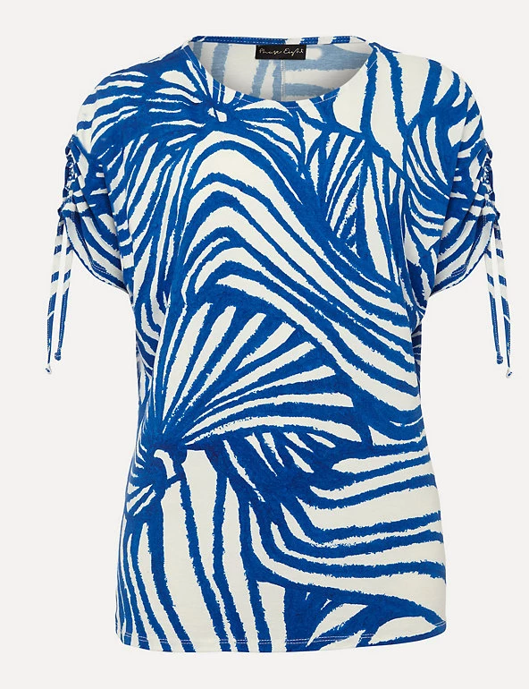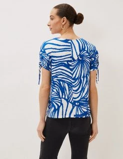 With its striking abstract shell print, this Phase Eight blouse ensures a statement look. It’s cut in a comfortable regular fit, with a smart round neckline. The short sleeves have drawstring ties to adjust the length. Made with sustainably sourced viscose.