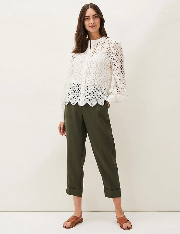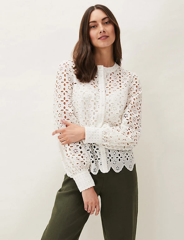 With its intricate broderie detailing, this Phase Eight blouse combines a feminine look with contemporary style. It’s cut to a comfortable regular fit with a round neck. The body is lined so it feels gentle against your skin.