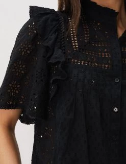 With its striking broderie design and elegant, boxy silhouette, this pure cotton blouse from Phase Eight is a day-to-night hero. It comes in a regular fit, with a button-through front and high neckline. Cut-out detailing at the yoke, and frills at the collar and shoulders, add a definite romantic feel.