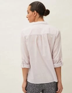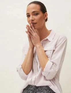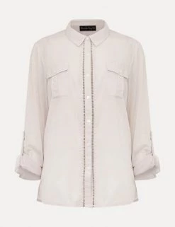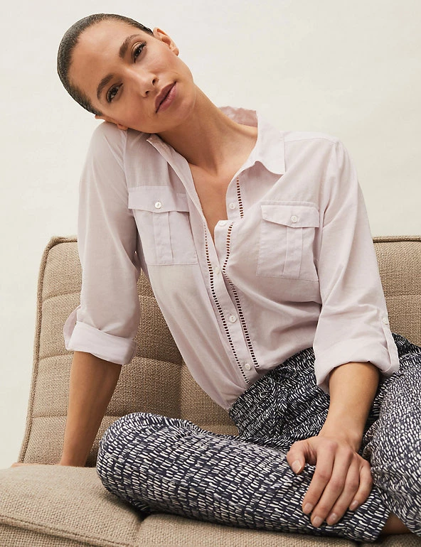 Crafted from pure cotton, this Phase Eight blouse is a chic option for day-to-night dressing. It’s cut to a comfortable regular fit, with a smart collared neck and turned up three-quarter length sleeves. Ladder trims on the button placket give it an original look, while patch pockets add a utilitarian feel.