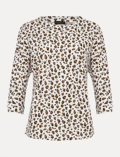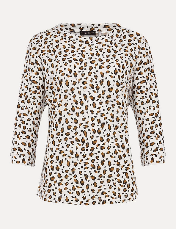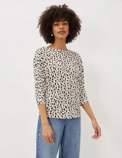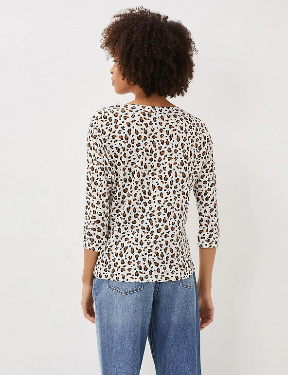 This cotton top from Phase Eight adds a touch of fierceness to any outfit with its bold leopard print. It’s cut in a comfortable regular fit with a flattering slash neckline and feminine three-quarter sleeves. This brand is proud to invest in making cotton production more sustainable.