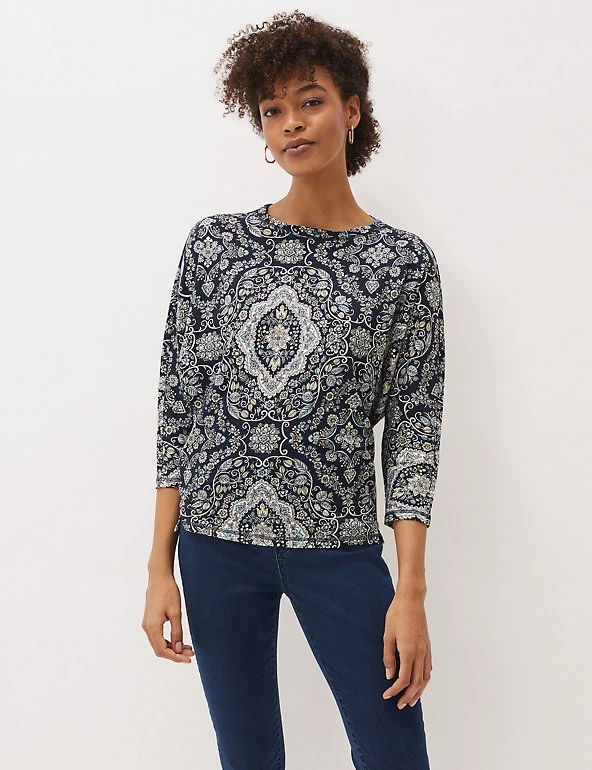 This pure cotton top from Phase Eight has a statement jacquard print for a standout look. It’s made in a comfortable regular fit, with three-quarter length sleeves that ensure a feminine feel. This brand is proud to invest in making cotton production more sustainable.