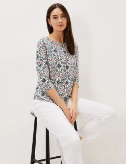 Step out in statement prints with this pure linen floral top by Phase Eight. It’s cut to an easy regular fit, with an elegant round neckline and three-quarter length sleeves. Dropped shoulders finish the look with a laid-back feel.