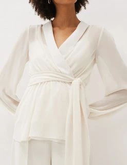 With its flowing fabric, this Phase Eight top brings an elegant feel to your ensemble. It’s made in a comfortable regular fit, in a true wrap style with a feminine v-neckline. A wide tie fastening emphasises your waist. The long sleeves are gathered to elasticated cuffs to create a touch of fullness.