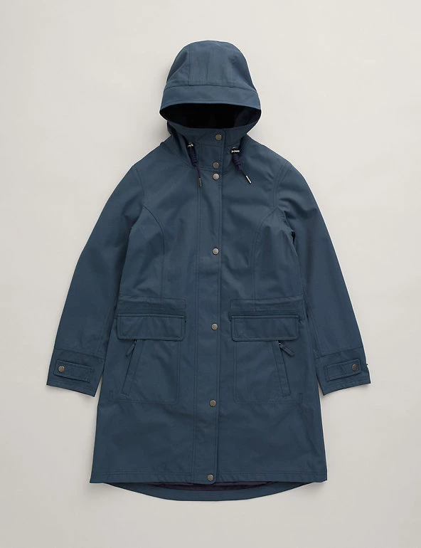 This raincoat from Seasalt Cornwall will make a practical addition to your work or weekend wardrobe. It’s designed in a regular fit with a flattering curved hem. A drawstring hoods gives an extra-snug feel. Stitch detailing and popper and zip fastenings add utility-inspired touches, and there’s plenty of room for essentials in the flap and zip pockets. Made with recycled polyester.