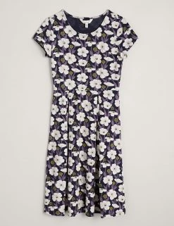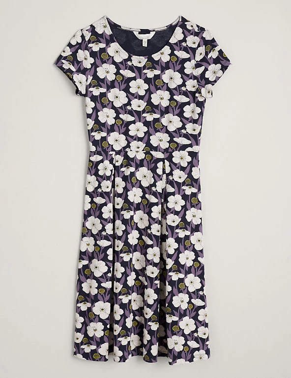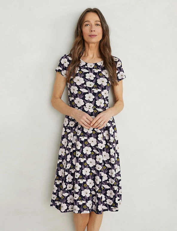 A vibrant floral print adds a playful touch to this waisted dress from Seasalt Cornwall. Cut to a comfy regular fit, it’s designed in a flattering fit-and-flare shape with a versatile knee-length hem. Short cap sleeves and a scoop neckline complete the look.