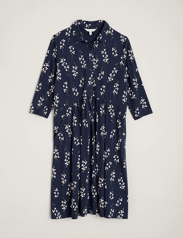 Designed in an easy shirt style, this cotton-rich dress from Seasalt Cornwall is printed with florals for added charm. It’s cut to a regular fit and has a relaxed empire waist for a flattering silhouette. This knee-length dress fastens with buttons up to a smart collared neckline. Crafted with added stretch for comfort, it’s finished with on-trend three-quarter sleeves and handy side pockets. Made with organic cotton.