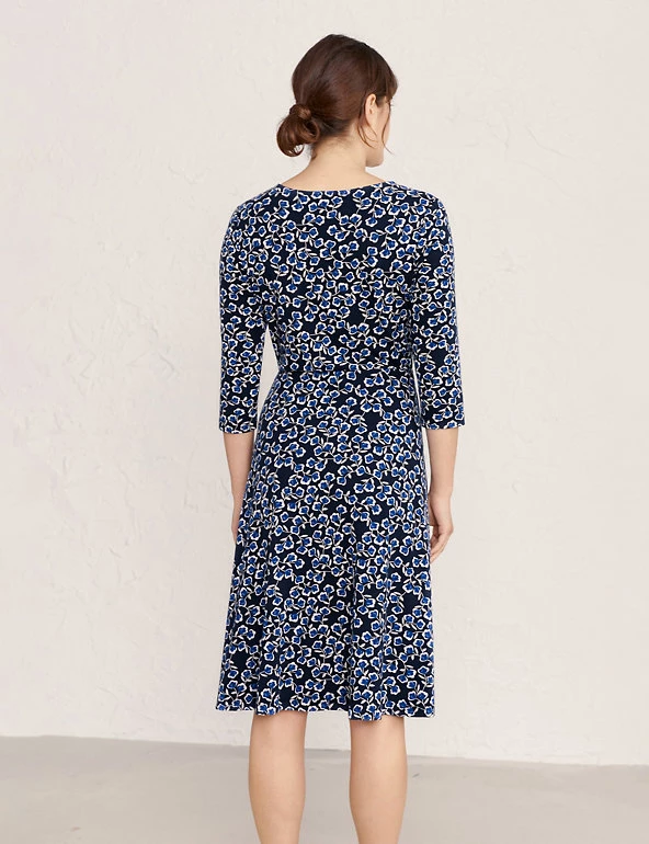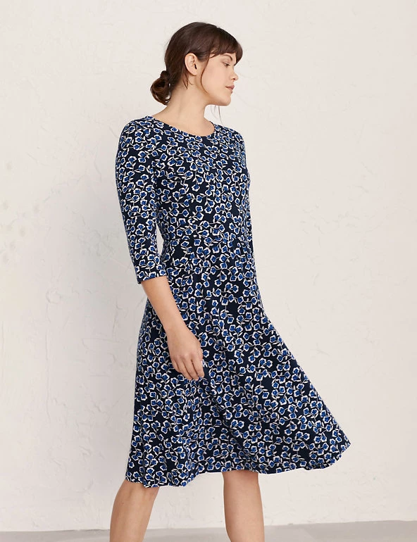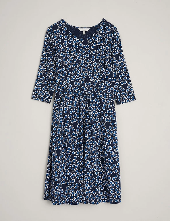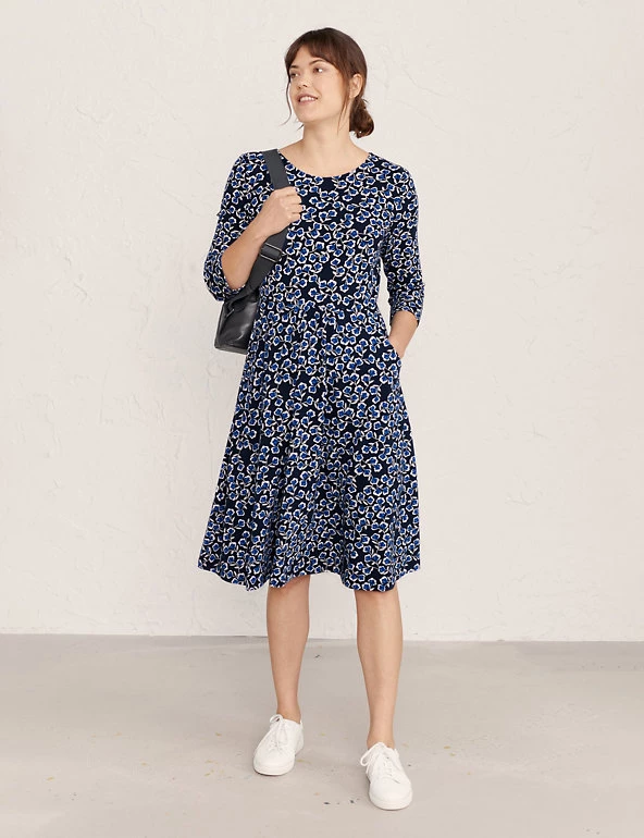 With its pretty floral print and cotton-rich fabric, this Seasalt Cornwall dress will be worn on repeat. It comes in a regular fit with a simple round neckline and stylish three-quarter sleeves. The dress has a waisted shape to flatter your figure and a floaty skirt that sits at the knee. Two side pockets offer a functional touch you’ll love, and added stretch ensures comfortable wear. Made with organic cotton.